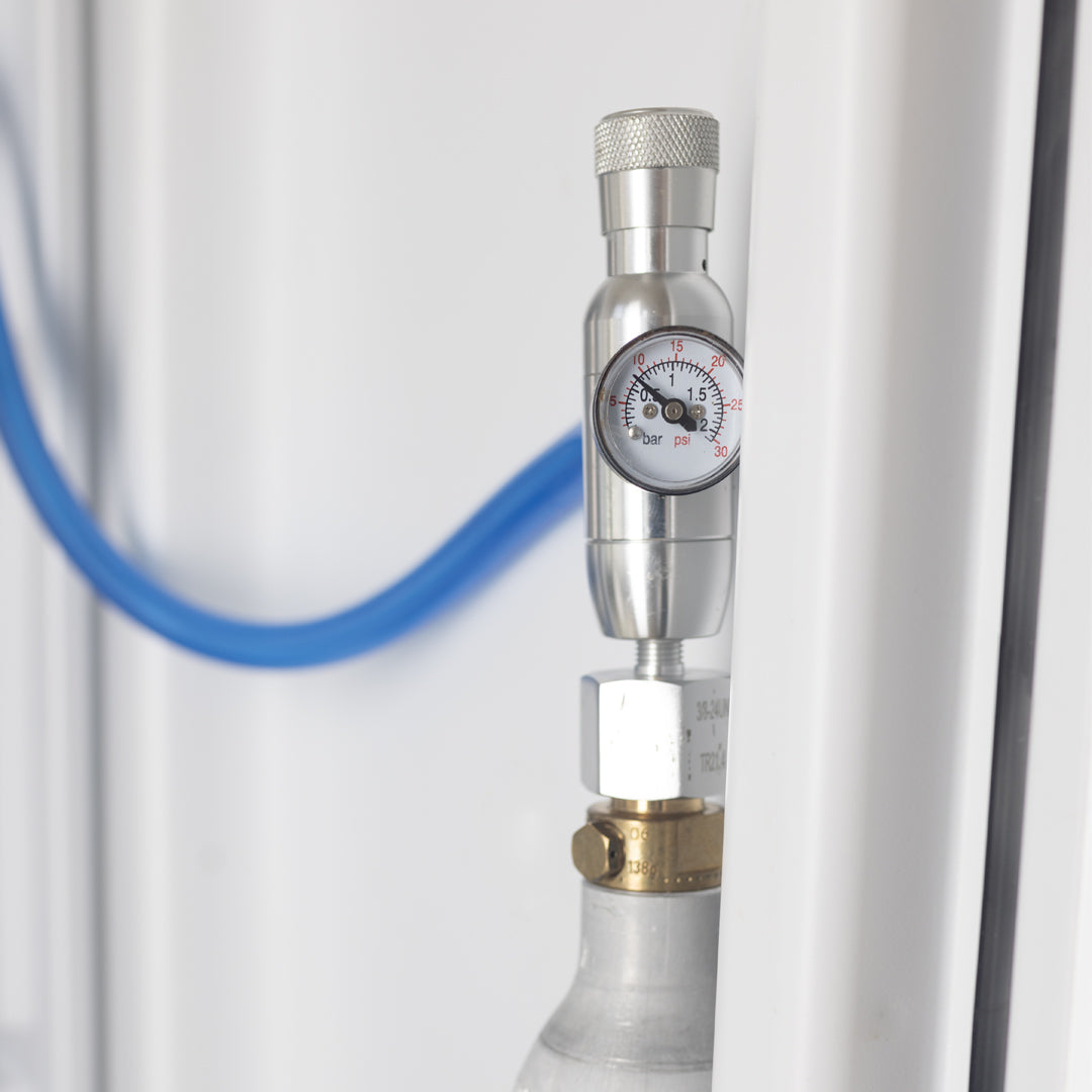 Connect a CO2 Cylinder* of your choice. Adding the right amount of pressure needed for your preferred beverage of choice.